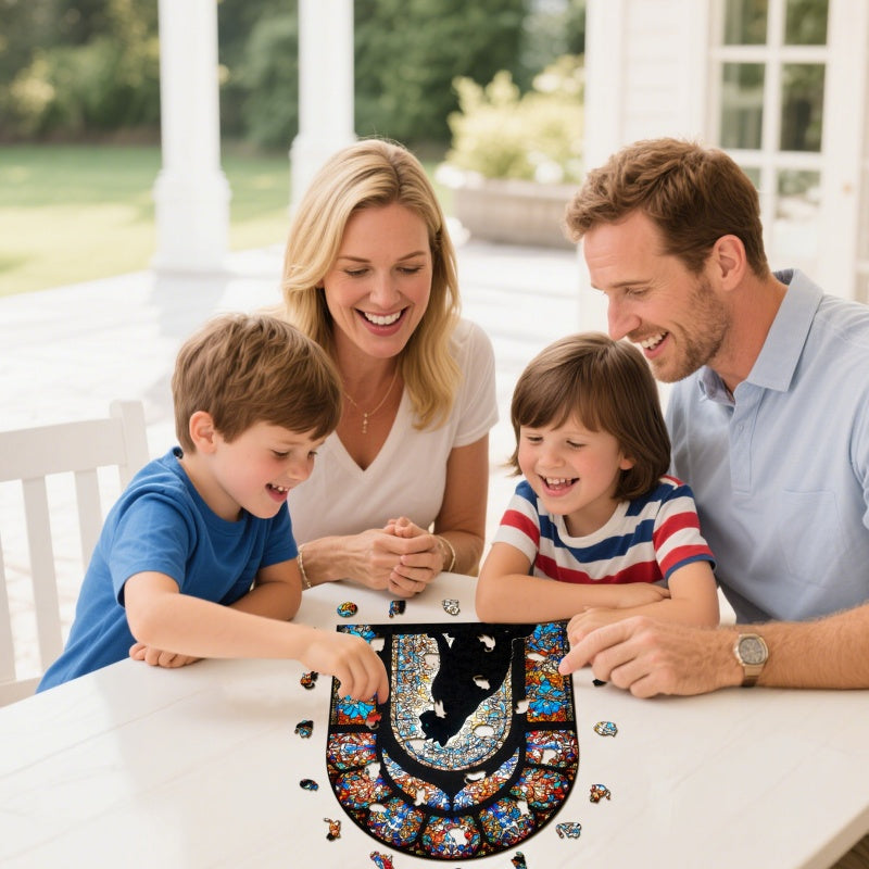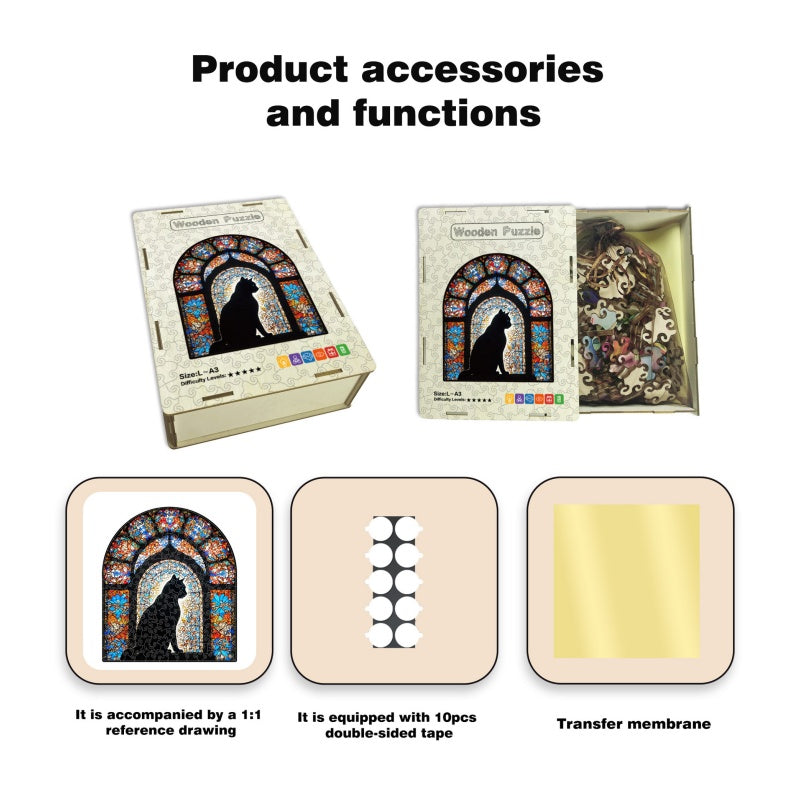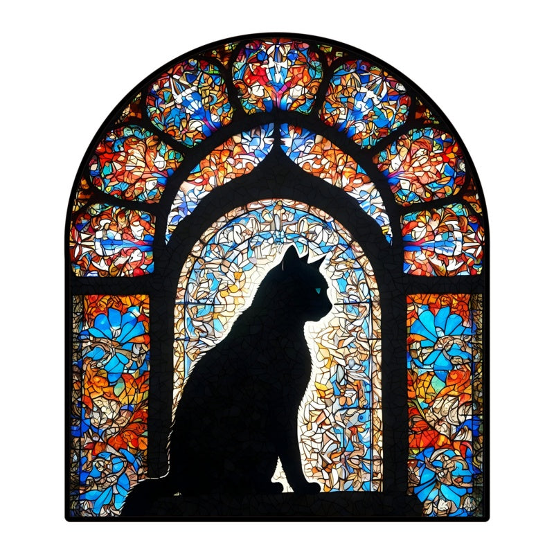 STUNNING ARTWORK DESIGN: Assemble a beautiful stained glass cat silhouette against a vibrant, arched window. This captivating design transforms from a challenging puzzle into a striking piece of art, adding a touch of elegance to any room.